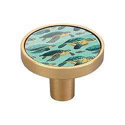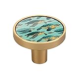 YMXFXP 4 Pack Sea Turtle Seamless Gold Cabinet Knobs, Cool Design Round Pulls Handle for Drawer Wall Dresser