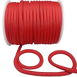 AEVORA 4mm Polyester Rope - 20 Yards Braided Solid Cord for Phone/Badge/Camera/Purse/Bag Lanyards, Clothesline (034-Red)