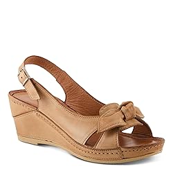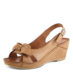 - Experience modern elegance with the Spring Step Chassidy women's wedge sandal, designed in Turkey for superior craftsmanship and style. This sandal features a sleek leather upper enhanced by a structured bow, blending minimalist design with a contemporary twist that elevates any wardrobe. The wedge heel offers a wearable height boost, while the padded leather insole provides plush comfort for extended wear. A hidden elastic under the buckle adds flexibility to the secure closure, allowing natural foot movement throughout your city strolls, office schedules, or casual evenings out. Pair the Chassidy sandal effortlessly with tailored shorts, flowy culottes, or a chic shift dress for a stylish, comfortable look.