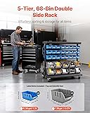 VEVOR 5-Tier Double-Sided Rolling Bin Storage Rack, 68 Plastic Bins, Dual-Sided Parts Organizer with Wheels, Mobile Tool Organizer for Garage, Warehouse, Office, Restaurant, Classroom, Kitchen