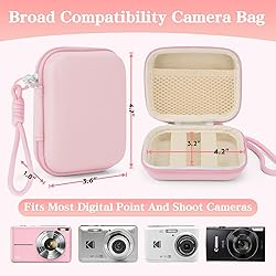 【Durable Travel Companion】This digital camera case features a dedicated mesh pocket to hold SD cards, batteries, and cables, keeping all your essential camera accessories organized and within reach. 【Lightweight & Rugged Protection】Crafted from premium hard EVA material, this case offers shockproof protection for your KODAK PIXPRO FZ55. Its lightweight and compact build is made for travel, with a textured surface for a secure, non-slip grip. 【Custom Fit for Your Camera】Designed to snugly hold digital cameras like the KODAK PIXPRO FZ55 and FZ45. An internal elastic strap securely locks your device in place, preventing shifts and scratches. 【Sleek & Highly Portable】This camera bag features a sleek, compact design that fits perfectly in any backpack, offering stylish and convenient protection on the go. 【The Ideal Practical Gift】This camera case is the perfect, useful gift for any digital camera owner. Its universal design ensures protection for popular models, making it a thoughtful choice for birthdays and holidays.