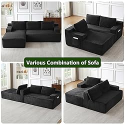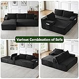 96" Modular Sectional Sofa, Modern Corduroy Cloud Couch with Side Pockets, Boneless Couch Upholstered 3-Seater L-Shaped Sofa for Living Room, No Assembly Required (Black, Left-Facing Chaise)