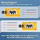 [Easy Installation and Mounting] Equipped with a wall mount bracket and a magnetic back, this remote control switch can be conveniently placed or hung on any metal surface. the hanging hole provides additional flexibility for installation, making it ideal for both temporary and permanent setups. [Efficient Remote Operation] Featuring two intuitive buttons, this remote control allows you to effortlessly lift or drop items on your dump trailer or crane. the wireless design eliminates distance limitations, significantly improving work efficiency and operational convenience. [Versatile Compatibility] This heavy-duty dump trailer remote control is designed to fit most double-acting hydraulic pump power devices, including dump trailers, electric forklifts, electric sanitation trucks, elevators, car tailplates, and more. its universal design ensures seamless integration with various equipment, making it a must-have for industrial and commercial applications. [Flexible Wiring Options] The rear cover can be easily loosened with a screwdriver, revealing the wiring terminals for simple connection. compatible with both 3-wire and 4-wire setups, this remote control offers versatile wiring solutions to meet your specific needs, ensuring a hassle-free installation process. [Weatherproof] Built with plastic shell and metal components, this remote control switch offers superior protection against dust, , and harsh weather conditions. the robust construction ensures long-lasting performance, keeping the internal wiring safe and functional even in demanding environments.