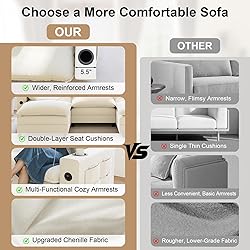 Comfy Sectional Cloud Couch: This cloud sofa features double-layer seat cushions that create a soft, plush, and relaxing feel. Its blend of high-density cotton and premium foam provides the perfect balance of softness and support. Designed for everyday comfort, this sofa offers a cozy, welcoming space whether you're relaxing or hosting guests. Multifunctional Sectional Sofa: KCGKCG cloud couch enhances daily relaxation with a built-in charging station, cup holder, and side storage pocket, keeping your devices powered, your drinks within reach, and your essentials neatly organized.This sectional couches for living room adds simple, practical features to make daily living easier. Customizable Modular Sectional Couch: This sectional couch makes it easy to create the layout you want. The movable ottoman lets you form a single seat, loveseat, L shaped couch, or U shaped couch, giving your space flexible options that fit any room. Each piece adjusts smoothly to match your preferred style and layout. Comfy Chenille Fabric: This modular cloud sofa uses premium chenille upholstery that feels soft, breathable, and richly textured, adding comfort and a touch of luxury to your space. The material is easy to clean and stays looking fresh even with daily use, making it an ideal choice for pet-friendly homes and long-term comfort. Durable Construction & Premium Materials:This cloud sofa features soft chenille fabric, high-resilience foam filling, and a sturdy solid wood frame that keeps the structure stable and long-lasting. The sofa uses tall, upgraded legs that make daily cleaning easier and keep the space looking fresh. Built for durability, the sofa maintains its comfort and quality through long-term use.