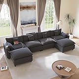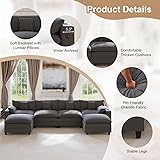 KCGKCG 152" Modular Sectional Sofa, U Shaped Cloud Couch with Movable Ottoman, Chenille Deep Seat Cloud Sofa with Charging Station, Cup Holder, Side Pocket, Sectional Couches for Living Room, Grey