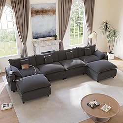 Comfy Sectional Cloud Couch: This cloud sofa features double-layer seat cushions that create a soft, plush, and relaxing feel. Its blend of high-density cotton and premium foam provides the perfect balance of softness and support. Designed for everyday comfort, this sofa offers a cozy, welcoming space whether you're relaxing or hosting guests. Multifunctional Sectional Sofa: KCGKCG cloud couch enhances daily relaxation with a built-in charging station, cup holder, and side storage pocket, keeping your devices powered, your drinks within reach, and your essentials neatly organized.This sectional couches for living room adds simple, practical features to make daily living easier. Customizable Modular Sectional Couch: This sectional couch makes it easy to create the layout you want. The movable ottoman lets you form a single seat, loveseat, L shaped couch, or U shaped couch, giving your space flexible options that fit any room. Each piece adjusts smoothly to match your preferred style and layout. Comfy Chenille Fabric: This modular cloud sofa uses premium chenille upholstery that feels soft, breathable, and richly textured, adding comfort and a touch of luxury to your space. The material is easy to clean and stays looking fresh even with daily use, making it an ideal choice for pet-friendly homes and long-term comfort. Durable Construction & Premium Materials:This cloud sofa features soft chenille fabric, high-resilience foam filling, and a sturdy solid wood frame that keeps the structure stable and long-lasting. The sofa uses tall, upgraded legs that make daily cleaning easier and keep the space looking fresh. Built for durability, the sofa maintains its comfort and quality through long-term use.