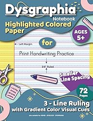 Dysgraphia Writing Practice Adaptive Highlighted Colored Paper Notebook for Print Handwriting for Kids with ADHD, Dyspraxia, Dyslexia, Irlen, Visual ... Inch) Smaller Line Spacing and Dotted Midline