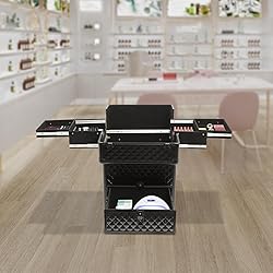 Josbuynls Rolling Makeup Case, Rolling Makeup Train Case w/4 Universal Wheels&Lock for Studio or Travelling (Black)