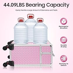Josbuynls Rolling Makeup Case, Rolling Makeup Train Case w/4 Universal Wheels&Lock for Studio or Travelling (Pink)