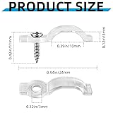 • Name:Light clips Material:Plastic Color:Clear Features:【What You’ll Get】This kit includes 100 pcs high-quality strip light clips and 100 pcs screws. This value-packed transparent fixing clips meets all your needs for large-scale or DIY light strip installations on cabinets, bookshelves, wardrobes, or outdoor eaves. 【Universal Compatibility Design】 These light strip mounting clips are specifically designed for 10mm wide waterproof light strips, with each screw approximately 0.43 inches/11mm in length. The mounting brackets are the ideal clips for 3528, 5050, 5630, and 3014 light strips, providing a secure grip on the most common waterproof silicone tube light strips available on the market. 【Single-Screw Fixation】 Featuring a one-sided fixing design, each clip can be firmly secured with just one screw. When you need to replace or maintain the light strip, simply slide it out from the free end without removing any screws. This simple installation method method greatly saves time and effort. 【Transparent Design & Premium Material】 Made from high-quality plastic material with UV-resistant additives, these transparent clips offer over 98% light transmittance. Transparent fixing clips remain clear and resistant to yellowing even with long-term use, achieving an invisible effect and making them suitable for both indoor and outdoor applications. 【Exceptional Stability】 The sturdy and durable strip lights clips mounting feature a clamping design that firmly holds the light strip in place, preventing sagging or detachment even under thermal expansion and contraction. Light clips provide long-lasting, reliable fixation on a variety of surfaces, including wood, metal, and concrete walls.