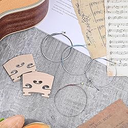 [Package List] This set includes 12 strings and 3 bridges, suitable for 1/2, 1/4, 3/4, and 4/4 size violins. The strings come in 4 different sizes, with 3 strings of each size, offering a variety of choices to meet the needs of your different instruments and allowing for easy string changes. [Superior Sound Quality] Our violin strings are crafted from high-quality steel, producing a mellow yet vibrant tone that enhances your playing experience, allowing you to easily produce clear and bright notes, making every practice session enjoyable. [Superior Materials] These strings are made of high-quality steel, making them durable and resistant to breakage or warping. Their lightweight material makes them easy to handle and install, ensuring they are a reliable choice for all violinists, from beginners to advanced players. [Wide Application] These violin accessories are compatible with a variety of violin sizes, including 1/2, 1/4, 3/4, and 4/4, making them ideal for learners and musicians of all levels. They are excellent replacement strings for your instrument, ensuring you always maintain optimal sound quality while playing. [A Thoughtful Gift for Musicians] These violin strings are suitable for any occasion and make a wonderful gift for violin enthusiasts of all levels. Whether it's a birthday, holiday, or special celebration, they are practical and thoughtful accessories that any violinist will appreciate, adding enjoyment to their musical journey.