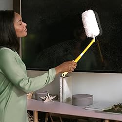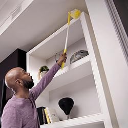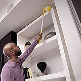 The set includes a 3-foot (approximately 0.9-meter) extendable handle that extends up to 6 feet (approximately 1.8 meters). This allows you to clean high or narrow areas without needing to climb on chairs or ladders. The duster features 360-degree specially coated fibers with a higher fiber content. It thoroughly attracts dust from all directions for efficient cleaning. The duster attracts and locks in dust and common household allergens such as pet dander and dust mites. It helps maintain a cleaner and more comfortable home environment. The duster head rotates and locks into four different positions, providing flexible cleaning options for various surfaces and situations. The set includes one extendable handle and three unscented disposable duster refills. The handle is reusable, and you can purchase additional refills to continue using it.