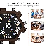 - This gaming table features a distinctive hexagonal design, offering a more immersive and inclusive experience than traditional square tables: its unique shape lets all players face the center equally, boosting interaction and avoiding awkward seating, while six evenly spaced sides fit more players and maximize edge space for cards, accessories, and drinks. Crafted from premium rubberwood, it boasts a sturdy, durable structure with eco-friendly properties and stable legs, ensuring reliable long-term use. As a multifunctional piece, it switches easily from dining to gaming table by lifting the tabletop, with under-panel storage for props. Practical accessories include detachable sliding cup holders, easy-clean sliding trays for tidy storage, and a durable leatherette game mat that adds comfort and protects pieces. Gather your friends and family around for endless gaming fun