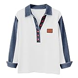 Long Sleeve Shirts for Women Button Up Denim Collared Patchwork Pullover Tops Vintage Jean Sweatshirt Casual Blouses