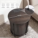 【Nightstand with Charging station】: This round side table is equipped with a built-in charging station, featuring 2 standard power outlets and USB & Type-C ports, allowing you to charge your phone, tablet, and other devices anytime. Whether placed in the bedroom, living room, or study, it easily meets the charging needs of multiple devices, making life more convenient. 【Perfect for Small Spaces】With its compact design and modern Round,this night stand with Sliding door in bedrooms, living rooms, dorms, or apartments. Use it as a bedside table, couch side table, or extra storage end table anywhere you need it 【Adjustable shelf and 4 solid wood legs】The fluted end table is designed with adjustable internal shelves, enabling you to customize the space layout according to item sizes freely. Whether it's books, remote controls, or personal trinkets, everything can be neatly stored, making it ideal for small items that need a designated spot. The wood legs ensure stability even on uneven floors. 【Sliding Roller Door Design】: Featuring a stylish sliding door with a groove design, this fluted side table offers easy access to hidden storage space while keeping dirt out. The smooth sliding door allows for effortless opening and closing, making it convenient to retrieve items without creating a mess. 【Easy to Assemble】This round end table (16.93“D x 23.62”H x 16.93"W)Clearly labeled parts, included tools, and step-by-step instructions make setup quick and frustration-free. You’ll have this sofa side table ready in no time