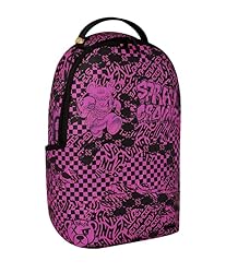 • The HOT PURSUIT BACKPACK boasts durable faux leather, gold zippers, and metal hardware. It offers a front zipper pocket, side pockets, a zippered stash pocket, and a separate velour sunglass compartment. The backpack also features adjustable straps for custom sizing and a metal 'Sprayground Authentic' badge.
