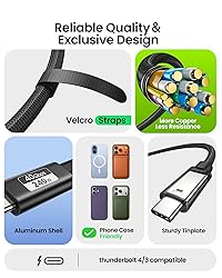 🥇USB4.0 40Gbps Fast Data Transfer – USB4 cable to deliver high transfer rates of up to 40Gbps.Now it takes you less time to transfer photos, music, TV series or movies and back up your files with the USB-C cable, 8X faster than a USB 3.0 cable. 🎞8K HDR Design for Professionals – Provide a single 8K@60Hz / 5K@60Hz / 4K@144Hz or dual 4K@60Hz display support. Connect your laptop or dock to a monitor and get a crisp detail and 10-bit color depth view. Support MST Daisy Chain, release your efficiency and improve the professionalism of the project. ✅240W PD3.1 Fast Charging and E-Marker – With its USB4 cable, you can charge your devices at lightning speed as it can handle up to 240W (48V/5A) charging power. Thanks to the E-Marker chip, a stable power and voltage supply is ensured, protecting your devices from overcharging and overheating. 💫Durable Braided Nylon Design – Fitee Thunderbolt 4 Cable features a premium braided nylon exterior that resists wear and tear for a longer lifespan. ✔Top Customer Service – The cable provides 2 years service, any product problems will be solved within 24 hours. Providing you with an unparalleled post-sales.
