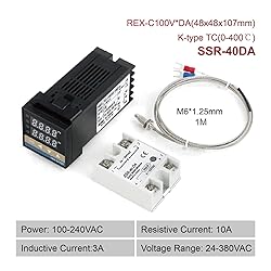 PID Temperature Controller REX-C100 PID Temperature Controller with K Type Thermocouple & 25DA/40DA/60DA Solid State Relay SSR Digital Thermostat(DA SSR-40DA)