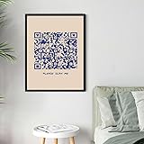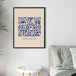 Framed QR Code Poster with Hearts Design Canvas Print Art Modern Minimalist Aesthetic Funky Art Print Cute Poster Wall Decor for Living Room Dorm Room Apartment Home Decor (Black framed,12L X16W)