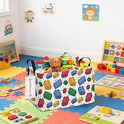 QUEENLALA Rectangular Laundry Hamper/Foldable Nursery Laundry Basket for Organizing/Storage Bin Baskets/Children Toy Office Bedroom/Toy Bin Closet Shelf Baskets (Rec-Blocks)