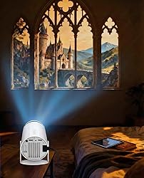 【Instantly Transform Any Room into an Immersive Storybook】 Simply open the pre-installed app and search for terms like "fantasy reading ambience" or “fake fantasy window” to project vibrant scenes like enchanted forests, glowing castles, or starry skies onto your wall. Instantly create a mesmerizing backdrop for immersive reading and spark anyone's imagination. Relax, focus, or escape into your fantasy. 【Breathtaking 4K Clarity & Auto Setup】Experience your Fantasy realms in stunning detail. This window scene Projector Fantasy has a native resolution of 720p and supports 4K input from external devices, allowing it to deliver clear and high-quality images when properly set up. And features Auto-Focus & Keystone Correction for a perfectly clear image in seconds. The short-throw lens projects a massive 100-inch screen from just 2m away, ensuring an incredibly immersive view for every story. 【 Effortless Wireless Streaming & Sound】Enjoy total freedom with built-in Wi-Fi and Bluetooth 5.4. Stream content seamlessly from your devices and pair with speakers for rich, cinematic audio. This fantasy scene Projection for Reading makes wireless setup simple, letting you focus on your Fantasy adventure without any messy cables.Effortless Setup - Plug in, pick a scene, enjoy. 【Flexible Projection & Immersive Built-In Audio】Featuring ±15° auto keystone correction and a 210° rotating stand, this Fantasy Projector easily projects on walls, ceilings, or floors to fit any space. Rich built-in audio delivers room-filling sound for stories, music, or ambient scenes—no external speakers needed. With whisper-quiet operation, it’s ideal for bedrooms, classrooms, or cozy reading nooks, even for late-night use without distractions. 【Ultra-Compact & Lightweight — A Story World Anywhere】Weighing under 1 lb, this Window Scene Projector is easy to carry and store, fitting effortlessly into a bag, dorm room, or RV. From cozy bedrooms and reading corners to living rooms or starlit outdoor nights, it instantly creates a magical story-book ambience wherever you go—perfect for fantasy lovers who want immersive reading moments anytime, anywhere.