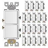 CML 20 Pack Decorator Double Rocker Light Switch, Two Single Pole Electrical Paddle, 15A 120V, in-Wall On/Off Interrupter, Self-Grounding, UL Listed, White