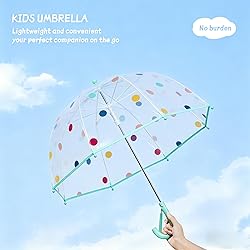 Clear Bubble Umbrella: Crafted with high-quality sturdy plastic, the canopy of this clear bubble umbrella boasts crystal-clear transparency. It ensures your kid has unobstructed visibility of the path ahead while walking in the rain, letting them stay aware of surroundings and enjoy rainy days to the fullest—perfect for parent-kid rainy outings together PEACE OF MIND CONSTRUCTION: Rounded tips and a pinch-proof closure keep little hands safe when opening or closing this bubble umbrella. It’s perfect for independent kids learning to handle their own gear, while taking the stress out of rainy-day prep for mom and dad WINDPROOF & RAINPROOF: This clear bubble umbrella boasts a 39-inch extended canopy—engineered to shield your little one from downpours and gusts. It’s one of the reliable clear umbrellas for rain you’ll find, keeping them dry during any outdoor adventure Kids Umbrella Size:Designed for boys and girls ages 2-10. The 39” canopy (a signature of our quality bubble umbrella) stands 25 inches closed and weighs just 0.61lb—light enough for small hands to carry MOMMY AND ME: Rainy days just got more fun! Match with our family-style options, including a sleek white umbrella or coordinating clear umbrellas—perfect for walking together in style