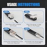 🔹【Clear & Compact Design】Transparent housing allows easy visual inspection, while the slim shape fits neatly into tight spaces—ideal for LED strips, model kits, and clutter-free installations. 🔹【Durable & Flame-Retardant Housing】Made of high-strength ABS and upgraded copper for excellent thermal stability and wear resistance. The flame-retardant material ensures safe, long-lasting use in various environments. 🔹【Tool-Free Quick Connection】Effortlessly snap wires together with this 2-pin quick splice connector—no stripping, cutting, or tools needed. Just insert and press the locking buckle for an instant, secure electrical connection. 🔹【Reusable Spring Clamp Mechanism】Each connector features independent spring clamps for a firm, vibration-resistant grip on both flexible and solid wires (22–18 AWG). Reusable design supports adjustments without damage. 🔹【Versatile Low-Voltage Applications】Perfect for DIY lighting, speakers, automotive wiring, household appliances, and more. The easy-install, snap-on design simplifies low-voltage connections across multiple projects.