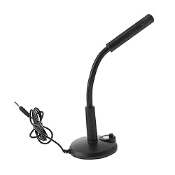 HOMSFOU Computer Microphone 3.5mm Interface Desktop Microphone with Base Portable Mic for Voice Chat and Live Streaming Compatible with Laptop Black