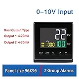 - Noted:Dual output meaning following: SSR dual= output1 ssr , output2 ssr Relay dual= output1 Relay , output2 Relay 0-10V dual= output1 0-10V , output2 0-10V 4-20mA dual= output1 4-20mA , output2 4-20mA Default 2 group alarms 0-10V Input Advantage:LCD display, high brightness backlight screen, wide viewing angle. Accuracy: 0.2% F.S. ========== High-concerned chemical : None Origin : China Display Size : 2.0 - 3.9 Inches