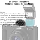- DY-ZV02 is suitable for SONY camera MI multi-functional interface hot shoe microphone windproof cotton 01) Product dimensions (excluding windproof cotton) : 50.7mm x23mm x25mm Weight: 11.8g 2in x 0.9in x 0.9in 02) Packaging size: 64mm x36mmx26mm, each package contains 17g /0.037lb 2.51in x 1.41in x 1in03) Function: 03-A) After installation on the camera, a fill light can be installed on the hot shoe for supplementary lighting. High-density windproof cotton is fine To significantly reduce wind noise when shooting in windy and windy outdoor environments, achieving better recording results. 03-B) The DY-ZV02 hot shoe also supports the function of triggering the flash from the top of the camera, and the camera shutter speed can be adjusted within 200 seconds. 04) Supported flash types: Supports all brands of flash with single-point trigger and for Canon /for Nikon standard contact flash. 05) Applicable cameras: for sony ZV-1,ZV-1 II,ZV-1F,ZV-E10,AV-E10M2,ZV-E1 a: Made of ABS material, it is sturdy and durable. The bottom is covered with 1mm anti-slip glue to prevent it from dropping b: Hot shoe expansion, no restrictions on top application - LED fill lights and microphones can be expanded and installed on the top without affecting the original microphone usage Accessories and flash lamps, flash triggers. Supports triggering flash. c: Flash - All single-point and multi-contact flashes are supported for use on the top of the camera (for sony Mi hot shoe flash is not supported). The top hot shoe of the DY-ZV02 Supports triggering single-point or for Canon port/for Nikon port camera triggers/flash triggers/remote controls.