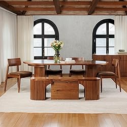 Transformer Table - Solid Wood Extendable Round Dining Table Set, Expandable Dining Table, Elegant and Functional Design, Perfect for Dining Room, Royal Brown (Table + Bench + 4 Chairs)