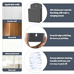 - Specification: 4-Pack Adhesive Remote Control Holder SetMaterial: High-Quality ABS Quantity: 2 Black & 2 Grey HoldersDimensions: 2.6” x 1.4” x 3.9” EachMounting: Tool-Free, No-Drilling Installation (Includes Double-Sided Tape & Screws)Compatibility: Holds Most Remote Controls, Pens, Makeup Brushes, and Other Small ItemsIdeal For: Home, Office, Gym, Bedroom, and Living Room OrganizationNote: Clean, Smooth Surfaces Recommended for Best Adhesion; May Not Stick to Rough, Textured, or Peeling Walls.