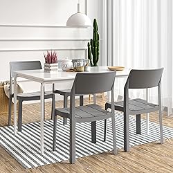 VECELO 4 Pack Stackable Dining Chairs, Plastic Patio Chairs for Indoor Outdoor Use in Kitchen, Poolside, No Assembly, Gray