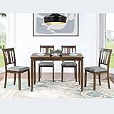 RuiSiSi Farmhouse Dining Table Set for 4, Solid Wood Rectangular Kitchen Table with 4 Upholstered Chairs, 5 Piece Dining Table Set for Dining Room, Living Room, Small Space, Walnut