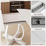 Expandable & Convenient: A locking mechanism effortlessly expands from 43" to 59" for 4-6 people, solving clunky panel storage issues- simply release the latch to switch freely between daily/ party mode, creating comfort for yourself, family or guests Space Saving: The unextended table stays compact, perfect for small spaces. When needed, quickly expands the tabletop to add 2 more extra seats vs. square tables while keeping seats neatly arranged and optimizing spatial efficiency Heavy-Duty Structure: Curved sturdy metal legs and X-base with 8 reinforced beams add durability and chic to your dining experience. Precision-fit fasteners and lock prevent screw loosening, while adjustable pads and backboard clasp stabilize on uneven floors, 110lbs Modern & Utility: Well-matched woodgrain texture and precise seams, also MDF smooth tabletop and elegant curved legs paired with modern non-clunky X-base suit diverse styles. Versatile dining/ tea/ office/ study desk as needed and enjoy a warm using experience Caring Details & Easy Assembly: The hidden sliding rail system allows quick table expansion in 10 seconds. Radius edges ensure 360° safety, bringing a better life to the elderly and children with heart. Also, all-in-one kit with step-by-step guide simplifies installation