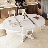 iPormis 59'' Extendable Round Dining Table for 4 to 6, Kitchen Table with Sturdy X-Base Metal Legs, MDF Board with Backboard Clasp, Space Saving, Easy Assembly, Kitchen, Dining Room, White