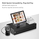 • Spec: Easily scan bar codes 1D, 2D/QR on labels, paper, and mobile phone or computer displays, sensitive and accurate, and even scan damaged barcodes, distorted barcodes, etc., special barcodes. Our omnidirectional barcode scanner can be directly placed on the desk; the anti-slip base makes it more stable. It is so easy to use; no extra training is necessary for new staff. Great for supermarkets, shopping malls, cosmetic stores, the retail industry, banks, and other industries that need payment scanning. Item Type: 1D/2D Barcode Scanner Platform Light Source Type: 625nm LED Supplementary Light Decoding Capability: QRCode, PDF417, MaxiCode, Aztec, DataMatrix(ECC200), Micro QR, Hanxin Code, Micro PDF417, EAN13, EAN8, UPC-A, UPC-E, Code128, Code39, Code93, CodaBar, Interleaved 2 of 5, Industrial 25, Codel1MSIPlessey, Standard 2 of 5, Plessey, ChinaPost 25, etc. Scanning Principle: Image CMOS Trigger Mode: Induction Mode / Continuous Mode / Instruction Mode Scanning Angle: Tilt Angle 65°, Rotate Angle 360°, Skew Angle 75° Scanning Accuracy: >4.5mil Reading Depth of Field: 5mil (Code39) 2cm-13cm, UPC-13mil 2cm-28cm, 20mil (Code39) 2cm-35cm, 20mil OR Code 2cm-24cm Cable Length: 1.5m/4.92ft Compatibility: For Linux,​ for Android,​ for W​ins/7/8/​10 Product Size: 13.6x8.3x8cm/5.35x3.27x3.15in Product Weight: 224g/7.9oz How to Use: Connect the product to the USB interface of the device, then follow the steps instructions in the manual to start using. PackageList: 1 x Barcode Scanning Platform 1 x User Manual