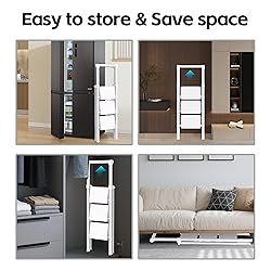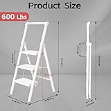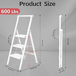 Built Like a Tank: Unbeatable Strength for Total Peace of Mind: Climb with absolute confidence. Our step ladder is engineered with a heavy-duty steel frame and 1.0mm thick tubes for rock-solid durability, far surpassing typical household ladders. It has rigorously passed 17 critical reliability tests in accordance with the strict U.S. ANSI/ASC A14.11 standard. This isn’t just a stool; it’s your safest, most stable partner for every reaching task at home. Every Step is Secure: Designed for Comfort and Slip Prevention: Feel the difference stability makes. The widened pedals feature a non-slip surface, and the heightened handrail gives you a firm grip for steady climbing and descending. Our thickened, full-contact rubber feet lock the ladder firmly in place on any floor—preventing dangerous slips while also protecting your precious floors from scratches. Safety and floor-friendliness, combined. Safety Engineered into Every Detail: Your Protection is Automatic: We obsess over safety so you don’t have to. Critical joints are reinforced with dual rivets and steel bars. The innovative 3-latch locking mechanism snaps securely into place, and the top step automatically engages the safety lock the moment you step on it. This ladder is designed to be foolproof, ensuring it stays securely open and stable whenever you’re using it. Folds Flat in Seconds,Ultra-Slim for Effortless Storage: Tired of bulky ladders hogging space? This genius design folds down to a mere 3 inches thin! Slide it effortlessly between the fridge and wall, stand it in a closet corner, tuck it under a bed, or hang it in the garage. Made from high-quality, lightweight steel, it’s incredibly easy to carry with one hand from room to room—maximizing convenience without sacrificing strength. Your Go-To Helper for a Million Household Tasks: Why own five tools when one does it all? Reach high shelves safely, change lightbulbs, paint trim, decorate for holidays, water tall plants, or organize cabinets. Perfect for the kitchen, home office, garage, garden, or any room indoors and out. Its incredible versatility makes it the most useful tool you’ll grab for almost any daily project.