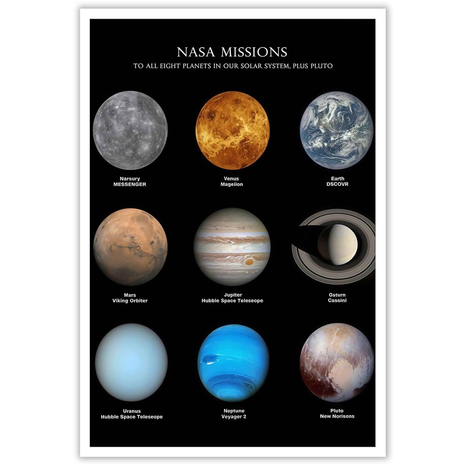 Space Educational Poster - Solar System & Planets Chart for Kids, Classroom Wall Decor for Elementary Science, Astronomy Learning at Home​(Unframed,08x12inch(20x30cm))