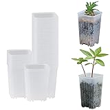 Value Pack of 50 Pots: Includes 50 square clear nursery pots, ideal for seed starting, propagation, or transplanting. Great for home gardening projects, greenhouses, or plant propagation setups Compact & Practical Size: Each square pot measures 1.97 inches top width, 1.57 inches bottom width, and 3.15 inches height, providing sufficient depth for healthy root development in small plants Transparent Durable Plastic: Made of sturdy plastic with a clear design that allows you to easily observe root growth, soil condition, and watering levels without disturbing the plant Effective Drainage Design: Features multiple drainage holes at the bottom to promote airflow, prevent water buildup, and support healthy root systems for seedlings and young plants Versatile Planting Use: Ideal for succulents, herbs, vegetable seedlings, seeds, or cuttings. Suitable for gardens, balconies, windowsills, living rooms, or office spaces