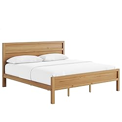 SOLID PINE CONSTRUCTION: Built with a solid pine wood frame and reinforced horizontal panels finished in matching pine veneer, this panel-style king bed delivers real wood strength and long-term structural stability. ENGINEERED FOR DURABILITY: Precision-routed steel bolts and cam locks, paired with doweled panel connections, create a structurally rigid bed that minimizes movement and flex during everyday use. CONTEMPORARY DESIGN: Clean-line horizontal panel detailing and a low-sheen satin pine finish highlight natural wood grain variation for a modern yet warm aesthetic in your bedroom. PRACTICAL STORAGE: 7.5 inches of ground clearance provides ample underbed storage space, helping you maximize your bedroom organization while maintaining a streamlined look. EASY ASSEMBLY & SUPPORT: Assembles in approximately 30-60 minutes with included instructions and supports up to 1000 pounds. Backed by a 1-year limited warranty with replacement parts program.