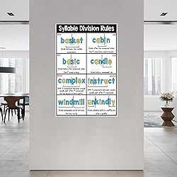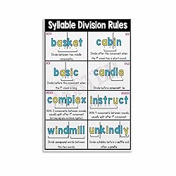 6 Syllable Types Classroom Poster, Syllabication Division Rules Chart for Kids, English Phonics Learning Materials, Teacher Homeschool Wall Art(Unframed,16x24inch(40x60cm))