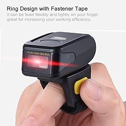Multi Format Decoding: This scanner captures common 1D 2D and QR codes to provide efficient data collection for applications in warehouses, supermarkets, and express companies. Dual Mode Connectivity: The unit utilizes 2.4G and BT wireless transmission technology to provide a mobile operating range of up to 10 meters from the host receiver. Wearable Ring Construction: The compact ring design includes a fast tape fastener to secure the device to the finger to facilitate hands free operation during warehouse or library tasks. Software Compatibility: This hardware is compatible with , Android, and iOS operating systems to support direct data entry into mobile phones, tablets, and desktop computers. Data Storage: The internal 512KB flash memory and 2KB off line storage capacity allow for barcode retention while the included cable provides charging for operation over several hours.