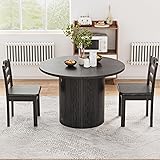 43-95 Inch Long Round Extendable Dining Table for 4-10, Space Saving Oval Large Dinner Kitchen Table with 3 Leaf, 2 Storage, Fluted Mid Century Modern Dining Room Table for Living Room, Black