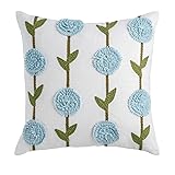 - Bring a fresh burst of elegance to your home with the Mud Pie Front Blue Hydrangea Pillow from the IN BLOOM collection. This decorative throw pillow features a beautifully embroidered blue hydrangea design on soft, 100% cotton fabric, adding a charming accent to any sofa, chair, or bed. Measuring 18" x 18", it’s perfectly sized to enhance comfort and style in your living room, bedroom, or favorite reading nook. Crafted with quality materials—front and back in 100% cotton with a durable polypropylene lining—this blue pillow is both inviting and long-lasting. Ideal for everyday use, seasonal farmhouse décor, or as a thoughtful gift, it’s easy to keep looking vibrant with simple spot cleaning as needed.