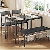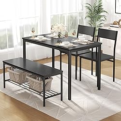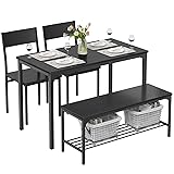 DUMOS Dining Table, Dining Table Set for 4 with Bench, Easy to Assemble Kitchen Table, Space-Saving Ideal 4-Person Set for Dining Room Kitchen Apartment Corner Black 4 Pack