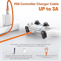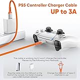 3A Fast Charge-while-Playing: This ps5 controller charger cord supports up to 3A power for fast charging of the PS5 DualSense/Edge handle, allowing for a gaming experience while charging. It can also provide power support for numerous USB-C interface device 10Gbps Turbo Transfer: Our long usb data ps5 controller cord support external SSD loads games at 960 MB/s, zero wait 10 ft Console Reach: The ps5 charging cable built for PS5 dualsense/edge and X-box core controllers, couch-to-console in one clean line, powers you up to take charge of your game For Game Equipment: Compatible with PS5/ PS5 Pro, PS5 DualSense/Edge, X-Box Series S/X, Elite Series 2/2 Core, NS Switch, Switch Pro, Switch Lite Controller, Meta Quest 2 and more Professional Design: JasRoum usb c data and charging cable stepped tip fits cases, silver aluminum shell, SR, and high-density yellow and orange braided layer protection design; 10 k+ bend braided cord resists pets & wear