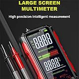 【Safety First】 The digital multimeter prioritizes your safety with its IEC CAT.III 1000V and CAT.IV 600V ratings. FS899L multimeter equipped with double fuse anti-burn and overload protection, ensuring maximum safety during use. CE and RoHS certifications further guarantee its reliability, making it a secure choice for automotive, industrial, and household electrical diagnostics 【True RMS Precision Measurement】 USB rechargeable digital multimeter delivers accurate electrical diagnostics with 6000 count capacity, measuring AC/DC voltage 60mV-600V (±1.2-1.5% accuracy), current 300mA-10A (±2.2-2.5% accuracy), capacitance 10nF-60mF, resistance 600Ω-60MΩ, plus frequency and temperature readings for professional-grade electrical work 【Comprehensive Diagnostic Functions】 The smart multimeter tester measures AC/DC current and voltage, capacitance, continuity, resistance, frequency, non-contact voltage detection (NCV), and ambient temperature, handling diverse electrical testing needs from household circuits to industrial equipment diagnostics 【Large 4.8" Illuminated Display】 Digital multimeter tester equipped with oversized backlit screen and built-in torch for clear visibility in dark spaces and cramped electrical panels, with data hold function to capture measurements during complex installations and challenging positioning scenarios 【Modern USB-C Rechargeable Power】 Features advanced USB-C charging technology providing 8 hours continuous operation after just 2 hours charging, eliminating battery replacement costs while ensuring reliable power for extended troubleshooting in workshops, labs, and field applications