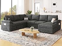 Split Delivery Notice: This modular sectional sleeper sofa is shipped in multiple cartons that may arrive at different times and if you have any questions regarding tracking numbers or delivery status our customer support team is always available to assist you Cushion Recovery Reminder: After unpacking the seat cushions will regain approximately 80 percent of their original shape within 48 hours and fully expand in about one week and for enhanced comfort and better sleep support we recommend placing a blanket or mattress topper on the sleeper surface before use Pull-Out Sleeper Function: Designed for flexibility this sectional sofa easily converts into a bed with a smooth pull-out mechanism making it ideal for guest use or multifunctional spaces and it is available in dark gray beige light gray and black to suit various home styles Premium Chenille Upholstery: Crafted with high-quality chenille fabric this modular couch is breathable wrinkle-resistant odor-free and pet-friendly offering long-lasting durability while remaining easy to clean and maintain Cloud-Like Comfort Support: Filled with high-density foam and resilient spring cushioning this sectional sofa delivers excellent rebound and plush comfort creating a soft yet supportive seating experience that helps relieve stress and promotes relaxation